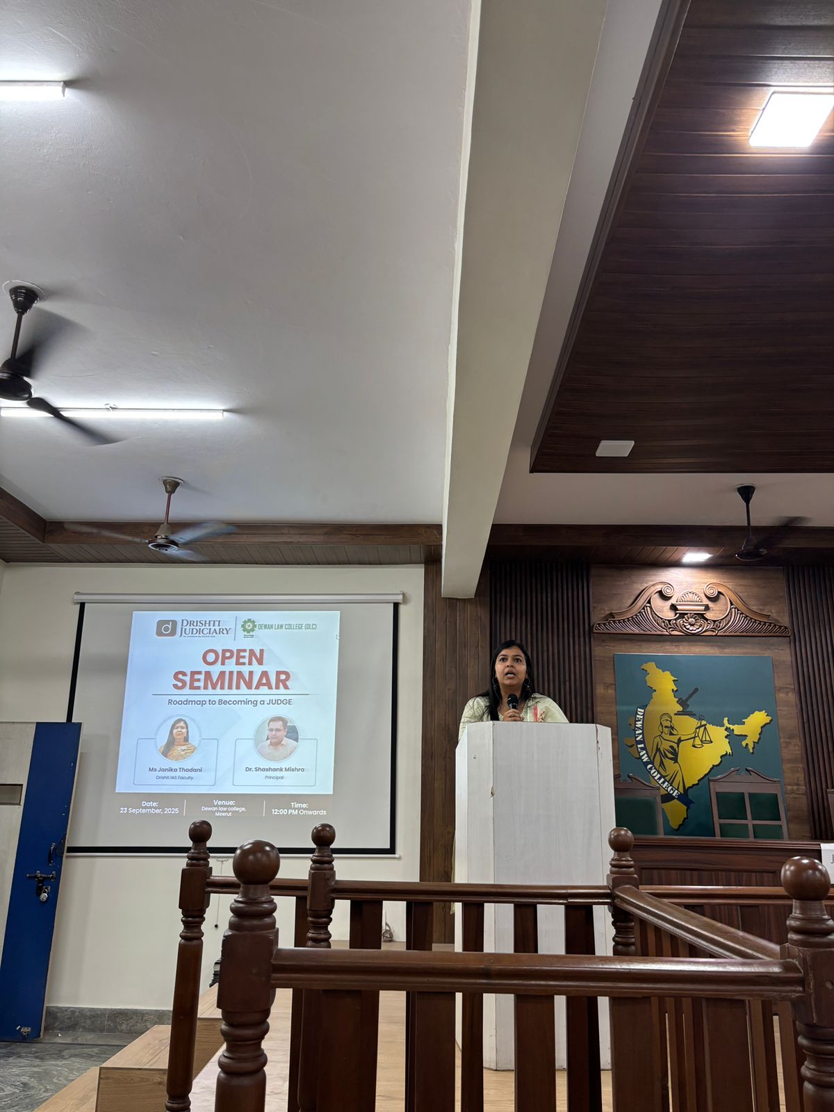 Today, an open seminar was organised in the Moot Court Hall of Dewan Law College on the topic “Preparation of Judicial Exams.” On behalf of Drishti Judicial and IAS Educational Institution, Ms. Jaink Thandani delivered a highly impactful and insightful lecture. Her valuable guidance and practical tips were immensely beneficial and deeply cherished by our students.
