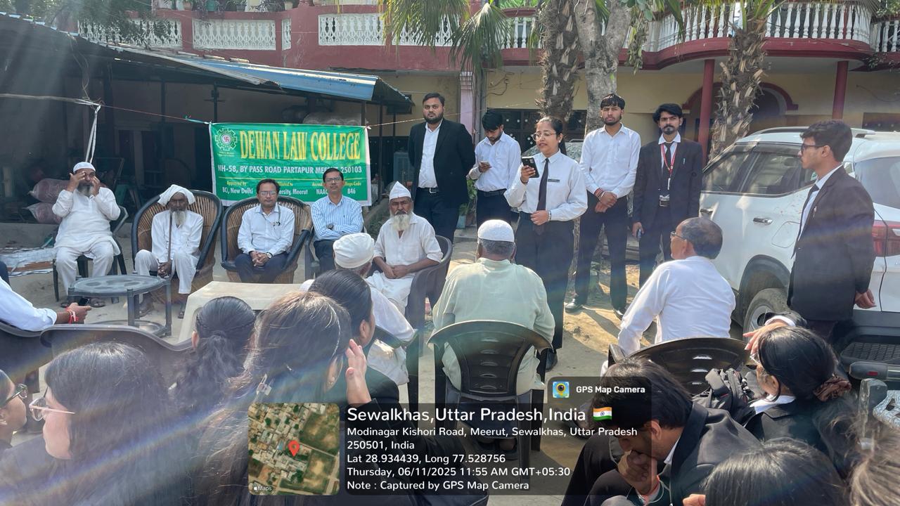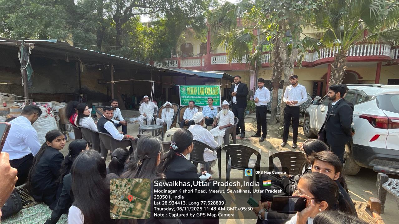 On 6th November 2025, Dewan Law College organized a Legal Aid Camp at Sivaal Khas Village. The primary objective of the camp was to familiarize students with the minor legal issues faced by villagers and to promote legal awareness at the grassroots level.